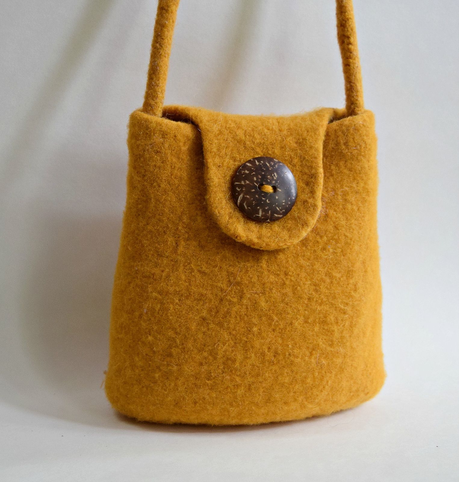 Answer 1: The bag is crafted from high-quality, eco-friendly felt, which serves as a sustainable alternative to plastic and leather, ensuring a positive impact on the environment while providing durability and a unique texture.