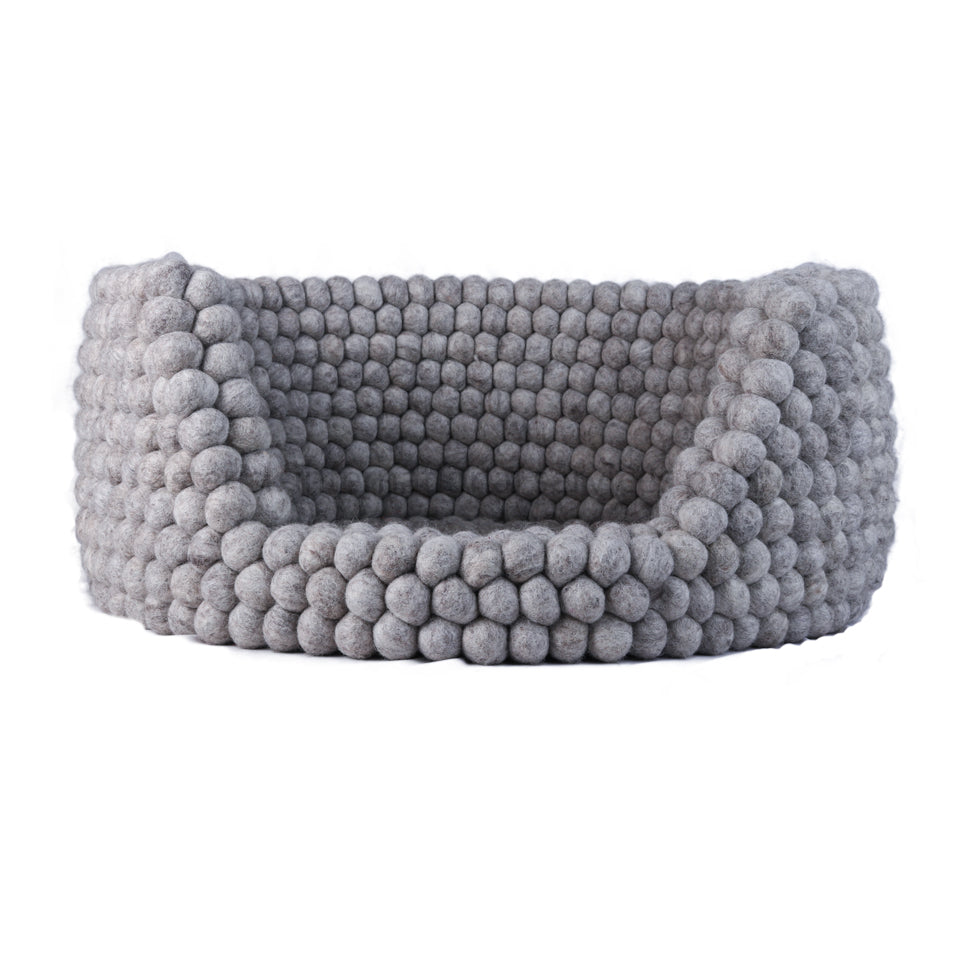 Give your dog a cozy and stylish retreat with this eco-friendly wool felt basket, designed to provide comfort and privacy for a restful haven.