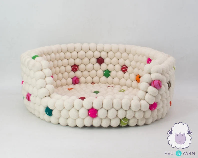 Answer 3: The wool felt dog basket is intended for indoor use. While it is durable, it should be kept in a dry, sheltered area to prevent damage from moisture and prolonged exposure to the elements.